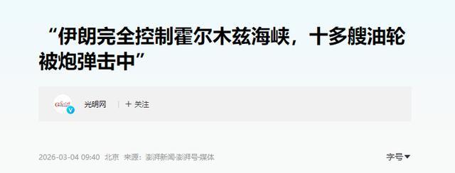 中东冲突进入天,伊朗的无人机、导弹打击也进行轮。同时,据新华社报道,伊朗革命卫队已经宣布,他们完全控制了霍尔木兹海峡,并且有超艘油轮因为无视警告,直接被炮击摧毁。面对这个情况,美国最大银行摩根大通发出警告,表示若中东冲突持续时间超周,那么国际原油价格将暴涨至每美元。同时,美国的中东盟友们也要撑不住了。彭博社透露,卡塔尔、阿联酋的防空系统拦截弹库存已经要用完,美国已经考虑动用自己的“全球战略库存”,来支援中东。韩联社也报道称,驻韩美军计划将部署在韩国的“萨德”反导系统也调往中东。从这些情况看,伊朗在经历了美以初期的猛烈空袭后,逐渐开始取得上风,拿到的战果越来越多。
